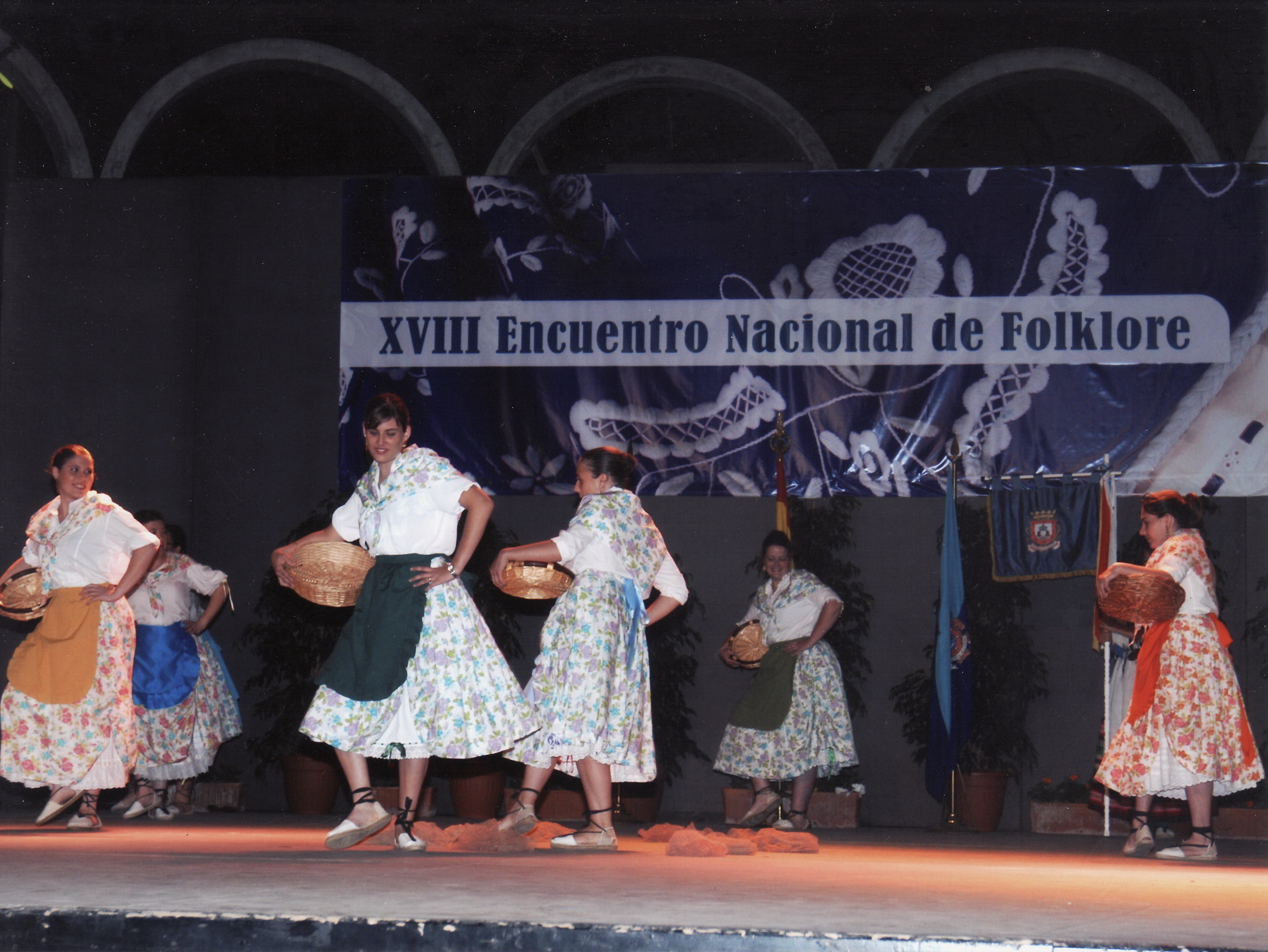 San Javier, 26 de junio de 2006XVIII Encuentro Nacional de Folclore de San JavierSan Javier celebró los días 24 y 25 de junio, su decimoctavo Encuentro Nacional de Folclore. En dicho festival actuaron grupos diversos de nuestra geografía nacional.Grupo de Jotas y Rondalla de “Viver”, Viver (Castellón)Viver, por su situación geográfica entre Castellón y Teruel, siempre ha tenido en su folclore la Jota, ésta se transmitía de padres a hijos como una tradición. Como bailes tradicionales siempre se han bailado las Seguidillas, la Jota y el Fandango tocada por la rondalla del pueblo. El “Grupo de Jotas y Rondalla de Viver”, se formó en el año 1988, cuando lo tomó bajo su dirección don Pablo Luis Maza, entonces profesor y coreógrafo del Cuadro de Jotas del Centro Aragonés de Valencia. Nuestro repertorio recoge nuestros bailes tradicionales:. Seguidillas, Jota y Fandango de Viver, y piezas de muchos pueblos aragoneses, como las Jotas de Alcañiz, Calanda o Zaragoza, Seguidillas de Leciñena o el Bolero de Caspe, así como las coreografías creadas por don Pablo Luis Maza. El Grupo ha participado desde su creación en varios certámenes de folclore, entre ellos visitó la ciudad francesa de Manosque, posteriormente actuó en la ciudad de San Javier, en Murcia 1996, en la ciudad castellonense de Onda, en la ciudad de Mazarrón, Murcia y ha participado en diversas ocasiones en las Cabalgatas del Reino de Valencia y del Pregón en Castellón, y ha realizado numerosas actuaciones en la Comunidad Valenciana y de Aragón. Grupo de Coros y Danzas “La Traiña”, AlmeríaEste grupo nace en el año 1982, en el barrio más viejo y de más solera de nuestra Almería, un barrio de pescadores y artesanos donde las tradiciones están muy bien arraigadas. Desde su nacimiento este grupo ha tenido como objetivo el fomento, difusión y recuperación del folclore español. Cuenta en su repertorio, con bailes como Peteneras, Boleros, Fandangos, Malagueñas, Alegrías, etc. Han recorrido la provincia de Almería en su totalidad, Granada, Sevilla, Castellón, Murcia, Barcelona, Ciudad Real, Oviedo, etc. Fuera de nuestro país han sido invitados por el Gobernador provincial de Al-Hoceima a recorrer las ciudades de Al-Hoceima, Metama, Chet-Chawen, Tetuán, Tánger, Mekinez, Fez y Baz-Taza. También por el Gobernador provincial de Kemisset, recorrieron Rabat, Mekines, Fez. Grupo de Coros y Danzas “Jesús Resucitado” – Peña Huertana “Los Muleñicos”, Mula (Murcia)El Grupo de Coros y Danzas “Jesús Resucitado”, surge como tal durante el año 1988, gracias a las inquietudes de un grupo de amigos que trabajan en pos del folclore de la Comarca del Río Mula para que esta no caiga en el olvido. Desde su creación este grupo ha mostrado con orgullo el folclore de nuestra tierra por todas las variedades y repletas actuaciones de alrededores, así como por toda la Región de Murcia y diversos Festivales Nacionales e Internacionales, en ciudades y pueblos como Alicante, Albacete, Villamalea, Granada, Vigo, Cádiz, Calanda, Portugal, Picanya (Valencia), Toledo, Teruel… por mencionar los más recientes. El grupo viene realizando una serie de actividades como misas huertanas y navideñas, además de participar en concursos de villancicos y encuentros de rondallas, habiendo obtenido numerosos reconocimientos y menciones a su trabajo. En la actualidad se cuenta con un amplio grupo repartidos, entre el grupo infantil y titular, y más de 20 personas repartidos entre músicos y coro. El grupo titular cuenta con dos trajes, el de faena (bordado en lana) y el de lujo (bordado con pedrería), y actualmente se está rescatando el traje antiguo de Mula, que esperamos poder disfrutarlo en breve. “Hermandad de Ánimas de Patiño”, (música tradicional de la Huerta de Murcia)Desde la Huerta de Murcia nos llega esta formación, una de las pocas cuadrillas de esta Huerta que aún mantiene vivo el ritual festivo en los diferentes periodos del año. Formada en su totalidad por jóvenes y mayores de muy distinta edad, son un buen y claro ejemplo de los sones de la Huerta de Murcia, una parte festiva con sus genuinas jotas y magnificas malagueñas como repertorio de música de “baile agarrao” y las tradicionales piezas introducidas en España a mediados del siglo XIX desde centroeuropa como son las polkas, mazurcas, pasodobles, valses… y otra parte religiosa, con la llegada de Navidad basada en el canto del aguilando y el canto de la aurora en sus diferentes periodos del año con las salves de Ánimas. Grupo de Coros y Danzas “Mar Menor”, de San JavierNació en 1968, por iniciativa de Don Antonio López Martínez, párroco de San Javier. La primera actuación tuvo lugar durante las Fiestas Patronales de San Javier. La situación ribereña del pueblo, a orillas del Mar Menor, parecía un poco reñida con la tradición huertana que inspira a los grupos de bailes regionales de los pueblos huertanos; no obstante, el éxodo de los huertanos a la costa trajo no solo su presencia física, no solo su trabajo y sus productos típicos de cultivo, también trajeron su espíritu huertano, sus sentimientos, sus tradiciones, su arte y sus bailes, y los ribereños, quizás guiados por ese espíritu y ese saber hacer ancestral que mueve a todos los murcianos, supieron recoger todas sus enseñanzas, todas sus vivencias, en una palabra “El espíritu de la Huerta”, hasta convertirlo en sentimiento propio. Buena prueba de ello es la proliferación de grupos y danzas y rondallas por los pueblos ribereños de Murcia. El debut del grupo fue, como no, en su pueblo, durante las fiestas patronales de 1968. A partir de 1976, y hasta el año 1980, el grupo sufrió una casi completa transformación en sus componentes; unos por su trabajo, otros por cansancio, otros por sus estudios, etc., fueron abandonando poco apoco el grupo, dejando paso al grupo juvenil que venía pisando fuerte; ellos fueron los que recogieron el t